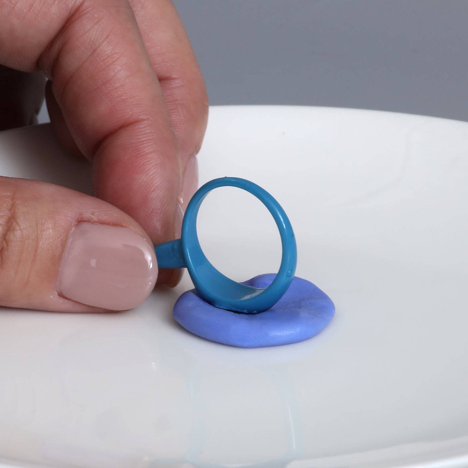 かたちをつける位置が温まり、色が変わったら肉球跡や指紋などでかたちをつけてください。